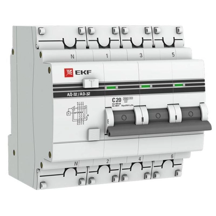 Дифференциальный автомат АД-32 3P+N 20А/100мА (тип АC) 4,5кА PROxima| DA32-20-100-4P-pro | EKF