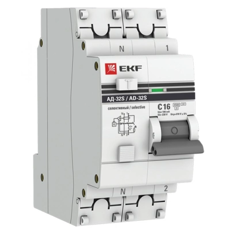 Выключатель автоматический дифференциального тока АД-32 (селективный) 1п+N 16A C 100мА тип AC PROxim
