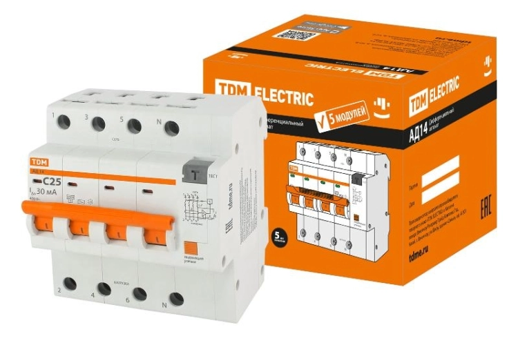 Выключатель автоматический дифференциального тока АД14 4Р 25А 30мА | SQ0204-0133 | TDM
