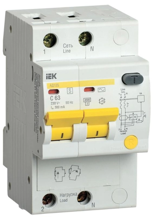 Выключатель автоматический дифференциального тока АД12S 2п 63А C 300мА тип AC (3 мод) | MAD13-2-063-