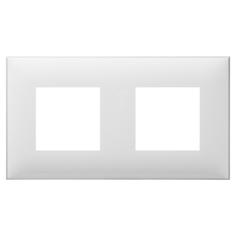 Рамка имеет 2 места под электроустановочные изделия (максимальная вместимость – 4 модуля), может размещаться как горизонтально, так и вертикально. Габаритные размеры: 160х90 мм. Материал – термопласт.