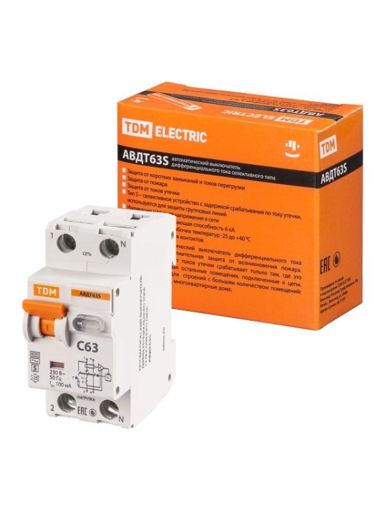 Выключатель автоматический дифференциального тока АВДТ 32 C63 100мА | SQ0202-0035 | TDM