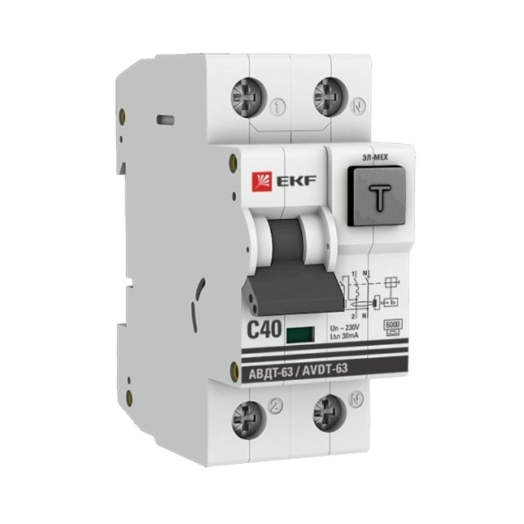 Выключатель автоматический дифференциального тока АВДТ-63 1п+N 40А C 30мА тип A PROxima | DA63-40-30