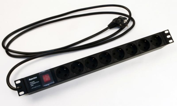 Блок розеток SHE19-8SH-S-2.5EUд. 19" шк., горизонт., с выкл. с подсветкой, 8 розеток Schuko(16A), 25