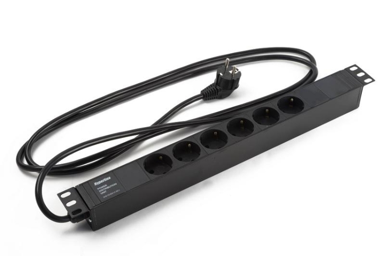 Блок розеток SHE19-6SH-2.5EUд. 19" шк., горизонт., 6 розеток Schuko(16A), 250В, 482.6x44.4x44.4мм(Дх