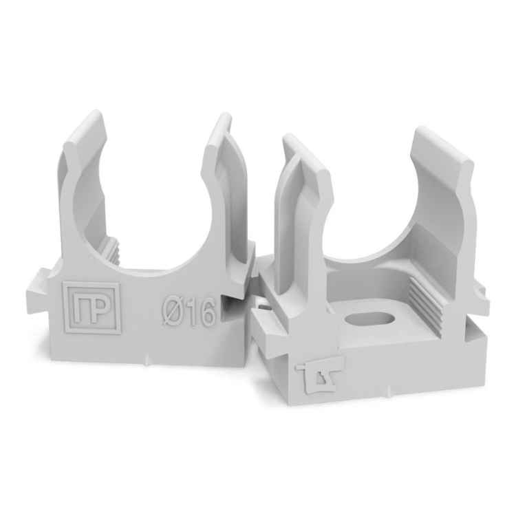 Крепеж-клипса для труб d16 мм атмосферостойкая для монтажного пистолета серая в п/э (100шт/1100шт уп