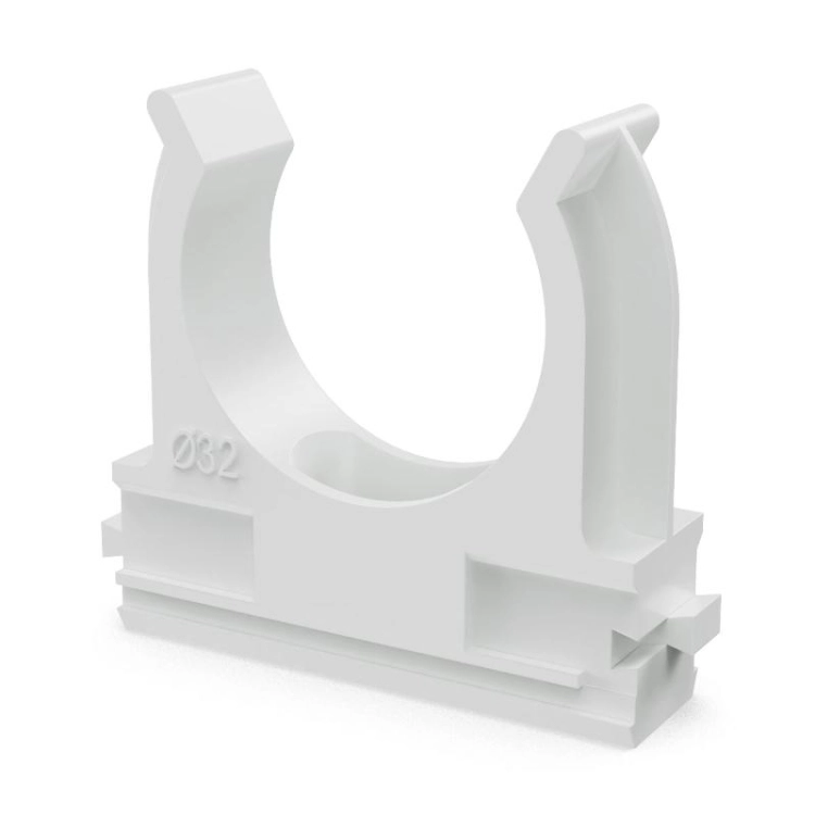 Крепёж-клипса для труб Полистирол белая д32 (25шт/500шт уп/кор) | PR.02732б | Промрукав