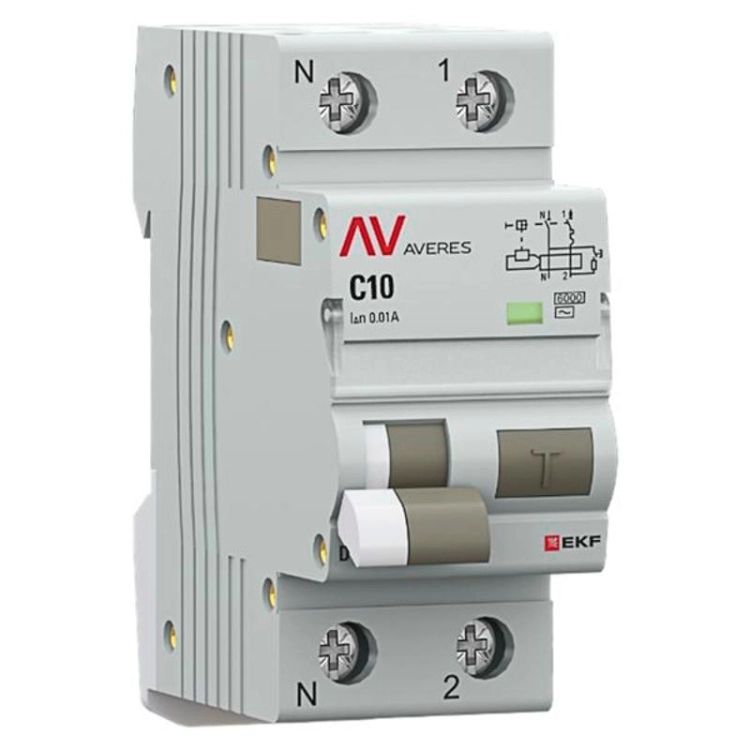 Выключатель автоматический дифференциального тока DVA-6 1P+N 10А (C) 10мА (AC) 6кА AVERES |rcbo6-1p