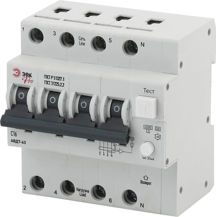Выключатель автоматический дифференциального тока NO-901-96 АВДТ 63 3P+N C16 30мА тип А Pro | Б00318