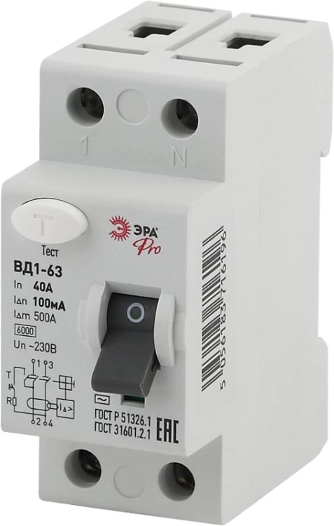 Выключатель дифференциальный (УЗО) (электромеханическое) NO-902-38 ВД1-63 1P+N 40А 100мА Pro | Б0031