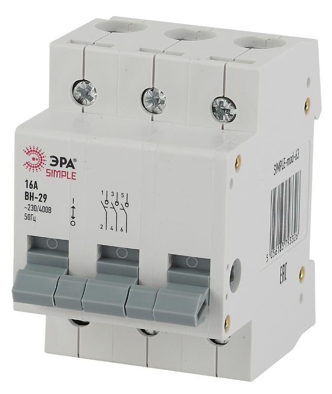 Выключатель нагрузки модульный (мини-рубильник) ВН-29 3P 16А SIMPLE-mod-63 ЭРА SIMPLE | Б0039253 | Э