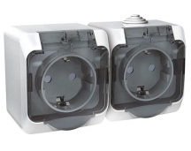 Этюд Белый О/У Розетка 2-я с заземлением со шторками, с крышкой IP44 | PA16-244B | SE