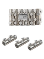 Каждый типоразмер рассчитан на диапазон сечений кабельных жил Контактные болты со срывающимися головками имеют проточки в местах срыва, обеспечивающие нормированный момент срыва их головок, что обеспечивает оптимальные электрические и механические свойства контактного соединения Применение для закрепления жилы контактных болтов со срывающимися головками упрощает монтаж V-образное расположение болтов обеспечивает надежную фиксацию жилы в корпусе наконечника Позволяют соединять жилы кабелей любого типа: - Алюминиевые и медные; - Круглые и секторные; - С многопроволочными и моно жилами. Резьбовая накатка на внутренней поверхности отверстия для кабельной жилы увеличивает площадь контакта и механическую прочность соединения