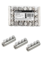 Позволяют соединять жилы кабелей любого типа: - Алюминиевые и медные; - Круглые и секторные; - С многопроволочными и моно жилами. Контактные болты со срывающимися головками имеют проточки в местах срыва, обеспечивающие нормированный момент срыва их головок, что обеспечивает оптимальные электрические и механические свойства контактного соединения Каждый типоразмер рассчитан на диапазон сечений кабельных жил Расположение болтов в один ряд эффективнее обеспечивает надежную фиксацию секторной жилы в корпусе наконечника Гальваническое покрытие улучшает коррозионную стойкость наконечников и улучшает электропроводные свойства в месте контакта Резьбовая накатка на внутренней поверхности отверстия для кабельной жилы увеличивает площадь контакта