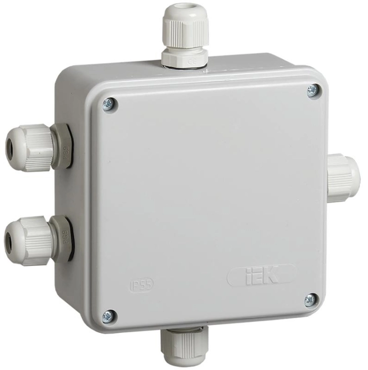 Коробка распределительная КМ41330 для о/п 100х100х50 мм IP55 (RAL7035, гермовводы PG9 5 шт) | UKO10-