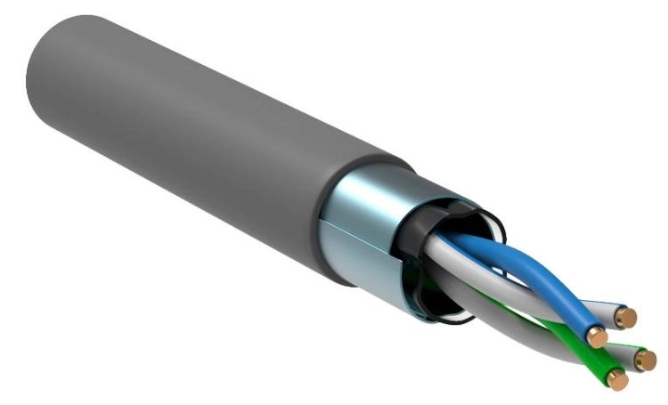 Кабель связи витая пара F/UTP, кат.5E 2х2х24AWG solid, PVC, 500м, серый | LC1-C5E02-311 | ITK