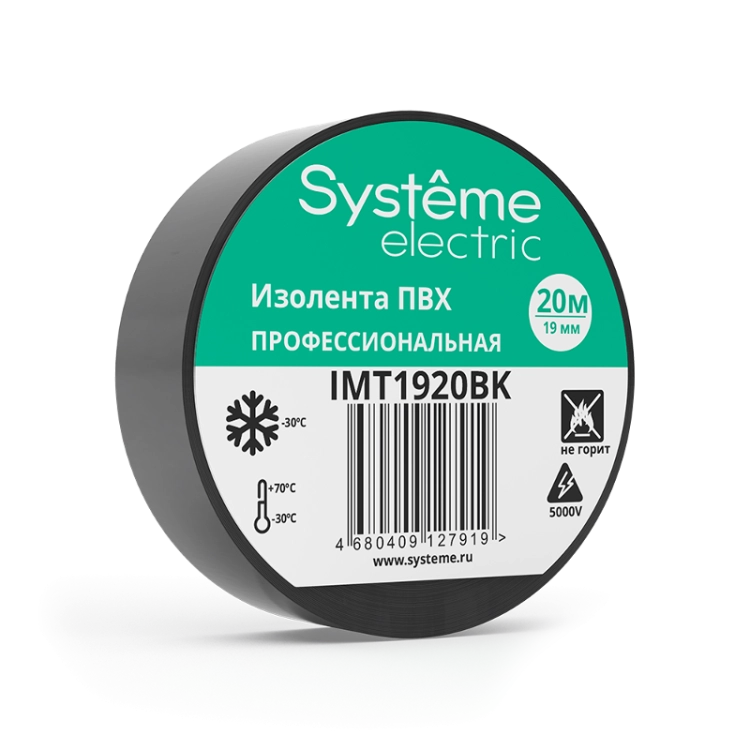 Изолента ПВХ 19мм Х 20м толщина-0,13мм Черная | IMT1920BK | SE