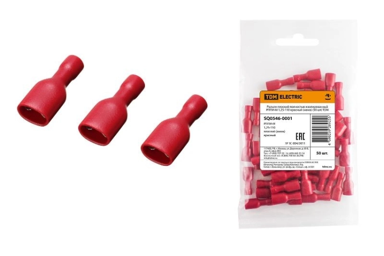 Разъем плоский полностью изолированный РППИ-М 1,25-110 красный (мама) (50 шт) | SQ0546-0001 | TDM