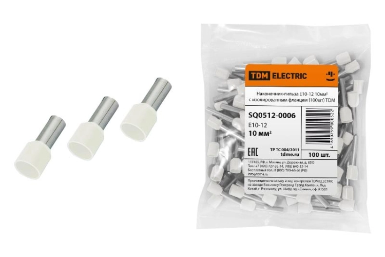 Наконечник-гильза Е10-12 10мм2 с изолированным фланцем (100шт) | SQ0512-0006 | TDM
