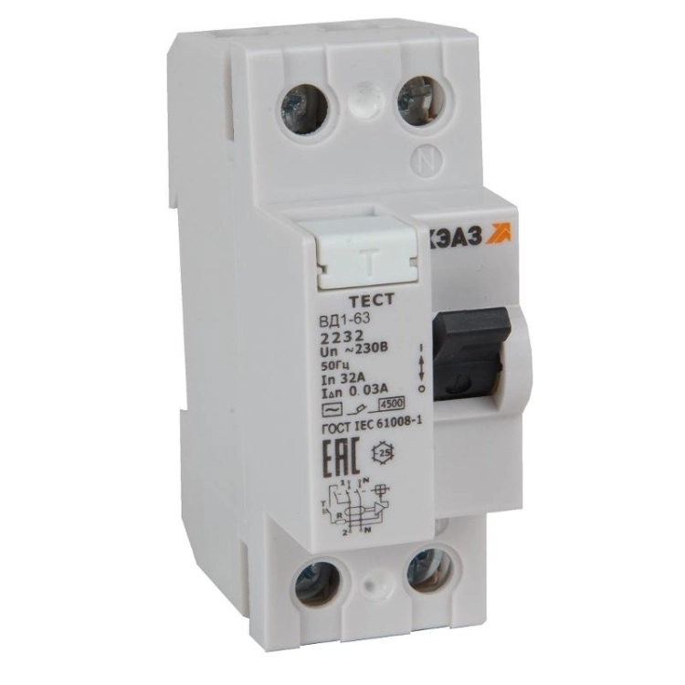 Выключатель дифференциальный (УЗО) ВД1-63-2325-АС-УХЛ4 (2P, 25, 100mA) электронное| 318465 | КЭАЗ
