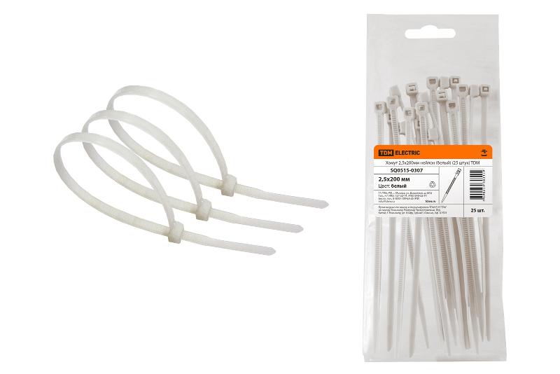 Хомут 2,5х200мм нейлон (белый) (25 штук) | SQ0515-0307 | TDM