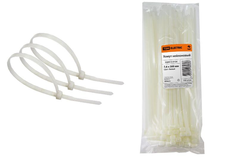 Хомут 7,6х300мм нейлон (белый) (100шт) | SQ0515-0134 | TDM