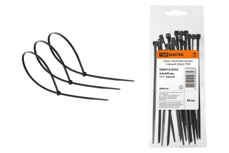 Хомут 4,8х450мм нейлон (черный) (50шт) | SQ0515-0233 | TDM