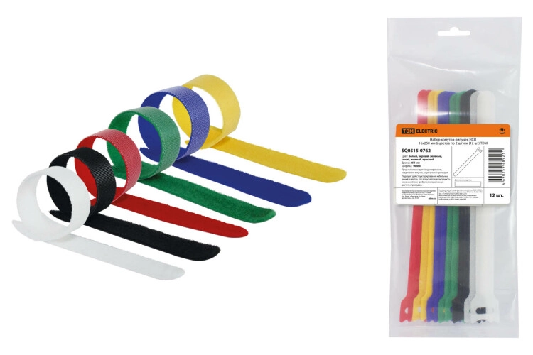Набор хомутов-липучек НХЛ 16х250 мм 6 цветов по 2 штуки (12 шт) | SQ0515-0762 | TDM