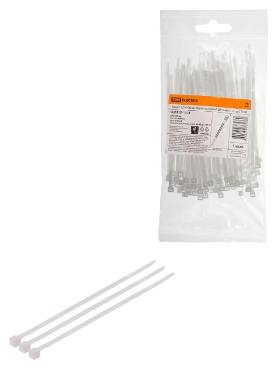 Хомут 2,5х100 мм морозостойкий (белый) (100 шт) | SQ0515-1101 | TDM