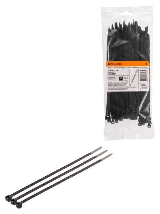 Хомут 4,8х200 мм морозостойкий (черный) (100 шт) | SQ0515-1108 | TDM