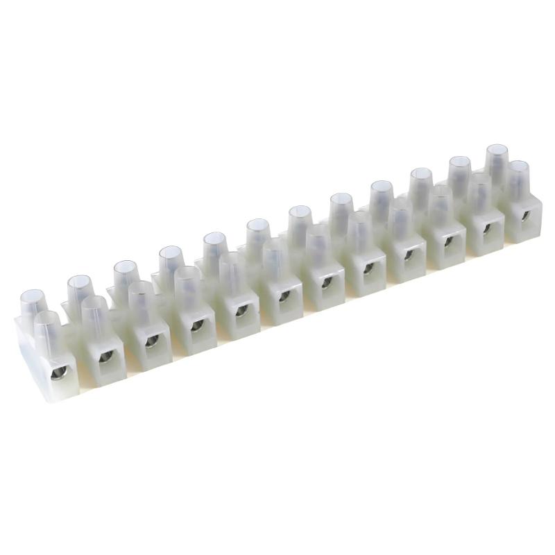 Номинальное напряжение винтового зажима – 450 В, номинальный ток - 57 А, количество полюсов - 12, рабочая температура – 110 °C, поперечное сечение подключенного многопроволочного провода – 10 мм. Материал корпуса – полиамид.