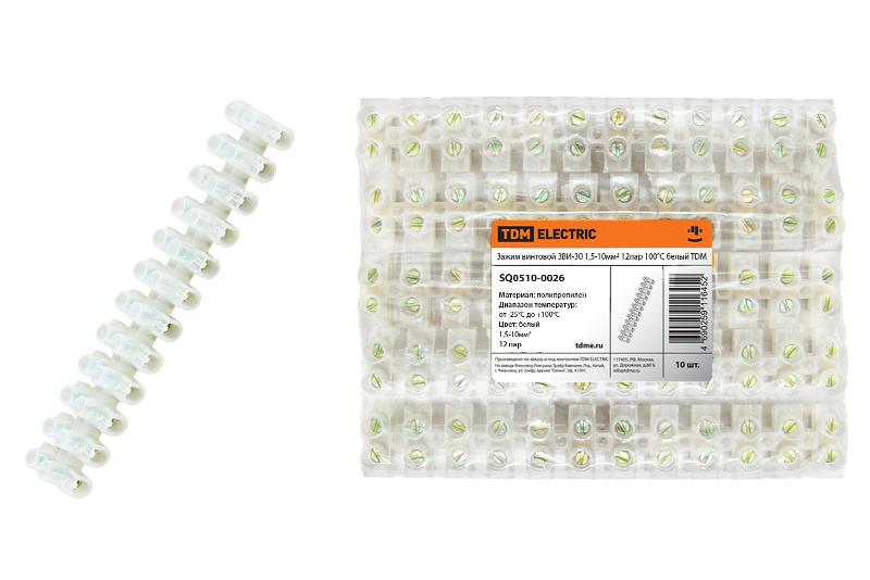 Зажим винтовой ЗВИ-30 полипропилен 1,5-10мм2 12пар 100°С белый | SQ0510-0026 | TDM