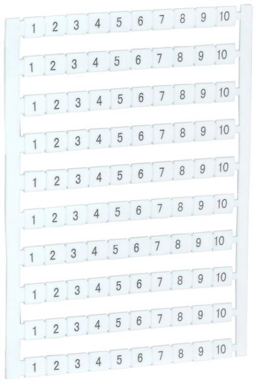 Устанавливаются в соответствующие пазы клеммы. Выполнены в виде пластин с десятью маркировочными площадками. Каждая площадка может отсоединяться друг от друга.
