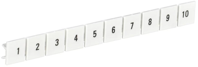 Устанавливаются в соответствующие пазы клеммы. Выполнены в виде пластин с десятью маркировочными площадками. Каждая площадка легко отсоединяется друг от друга.