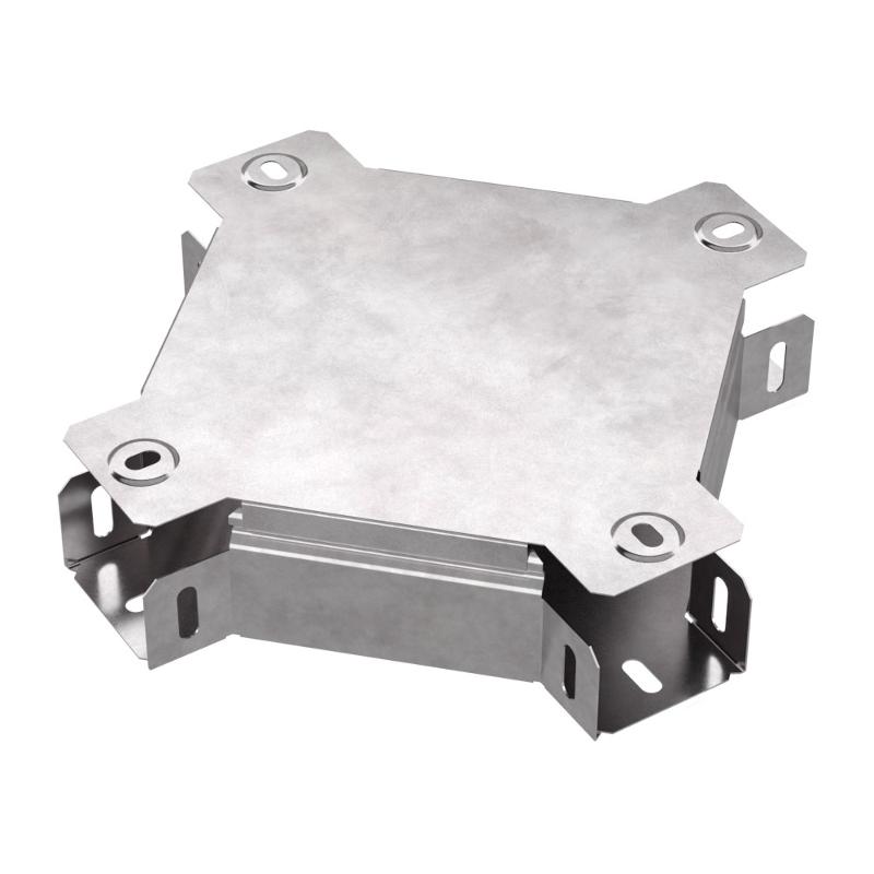 Ответвитель X-образный предназначен для разветвления кабельных трасс в горизонтальном направлении, для перфорированных и глухих лотков. В комплект входит крышка.