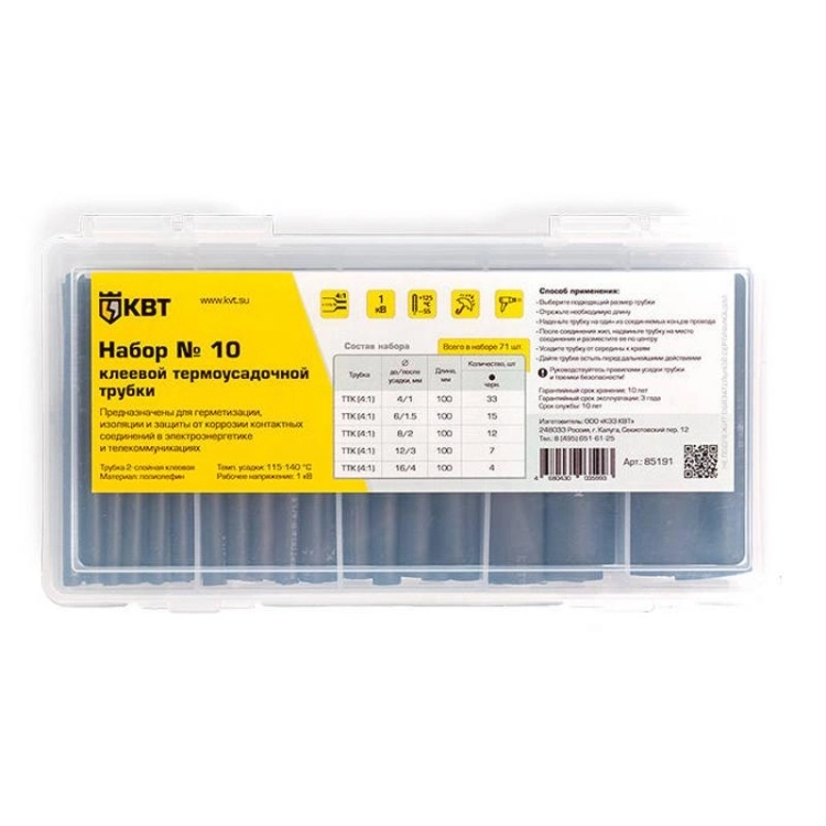 Набор клеевой термоусадочной трубки №10 | 85191 | КВТ