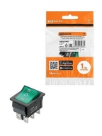 KCD4-203N 250В AC/DC, 2P, 15А, (6с), ON-OFF-ON, с нейтралью, черный корпус, зеленая клавиша, LED | S