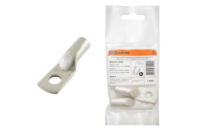 Наконечник медный луженый ТМЛ 50-10-11 ГОСТ 7386-80 (2 шт./упак.) | SQ0533-2008 | TDM