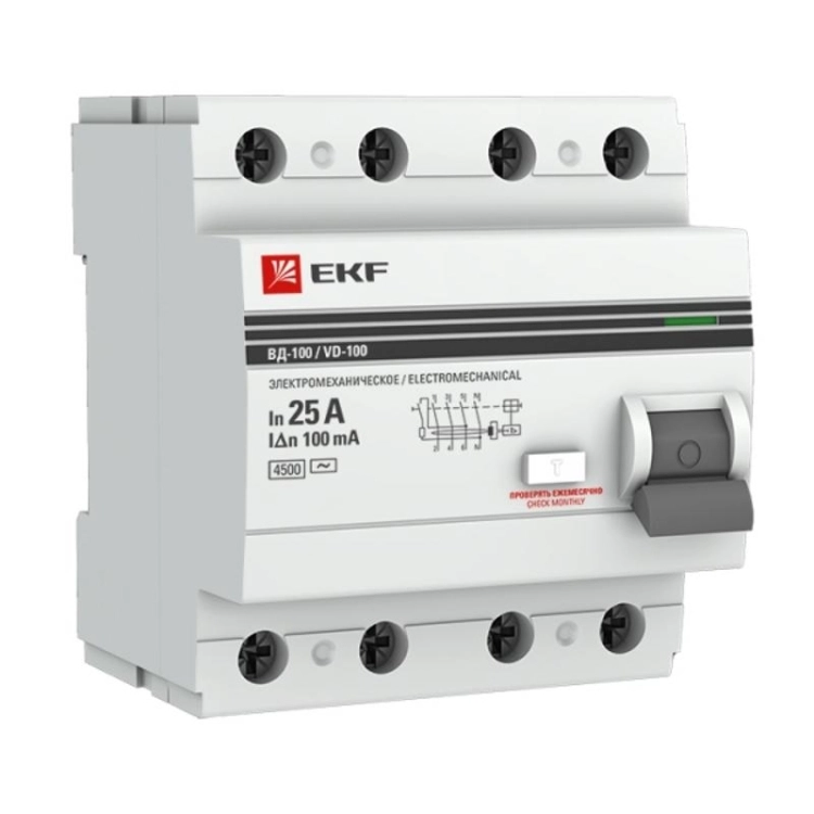 Выключатель дифференциальный (УЗО) ВД-100 4п 25А 100мА (тип АС, эл-мех) PROximа | elcb-4-25-100-em-p