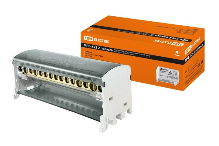 Блок модульный распределительный на DIN-рейку МРБ-125 2П 125А 2х15 групп | SQ0823-0012 | TDM
