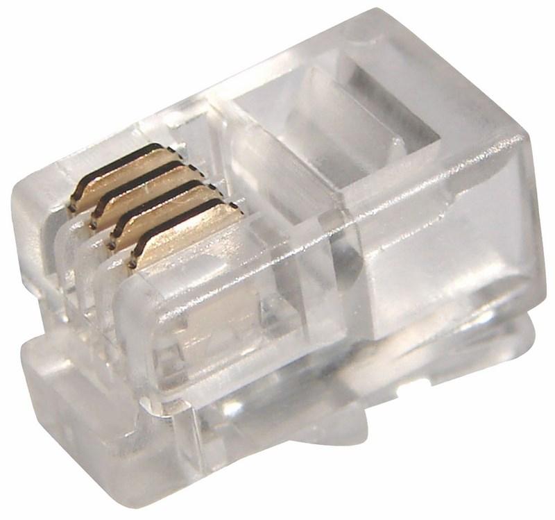Размещается на конце телефонныx кабелей для соединения с розеткой такого типа.