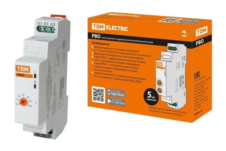 Реле времени РВО2-ВКЛ-0,6с/60сек-8А-24/230В-DIN (зад.вкл., 0,6с-60сек, 24/230В AC/DC) | SQ1503-0028