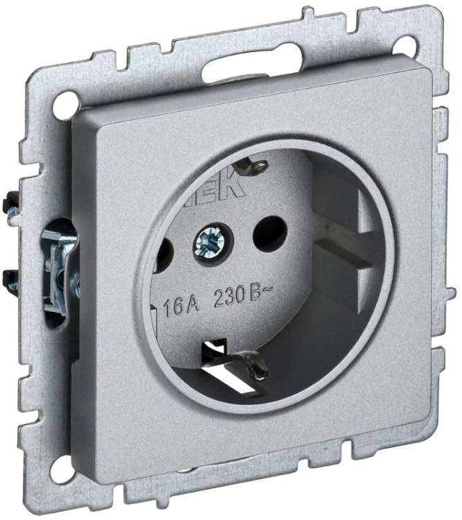 BRITE Розетка с заземлением со шторками 16А РС14-1-0-БрА алюминий | BR-R14-16-K47 | IEK