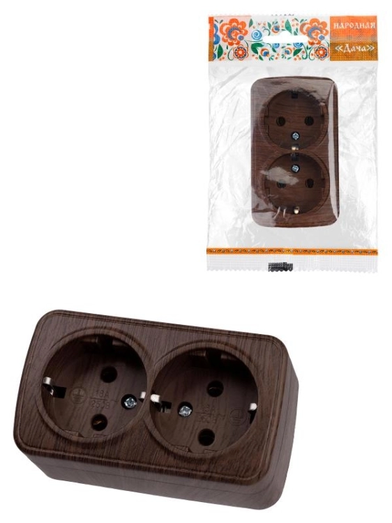 Розетка двойная 2П+3 открытой установки IP20 16А, венге "Дача" Народная | SQ1824-0030 | TDM