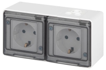 Розетка 2-ая ЭРА Эксперт 11-2504-01 2х2P+E гориз. IP55, с заземлением со шторками, 16A-250В, ОУ, Бел