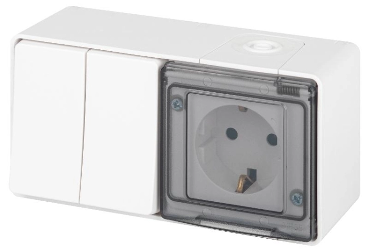 Блок: Розетка с выключателем 2-клавишным ЭРА Эксперт 11-7502-01 IP55, 16A(10AX)-250В, ОУ, Белый | Б0