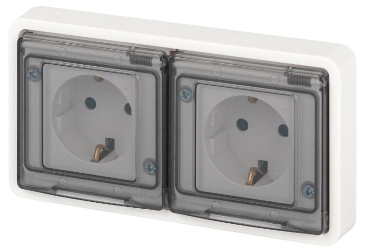 Розетка 2-ая ЭРА Эксперт 11-2523-01 2х2P+E гориз. IP55, 16A-250В, СУ, Белый | Б0063276 | ЭРА