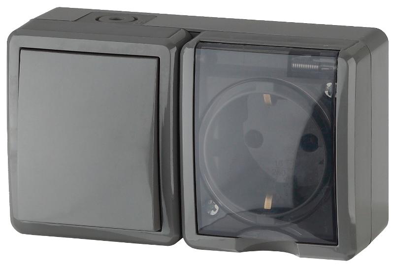 Блок розетка+выключатель 11-7401-03 IP54, 16АХ(10AX)-250В, ОУ, Эксперт, Серый |Б0020734 | ЭРА