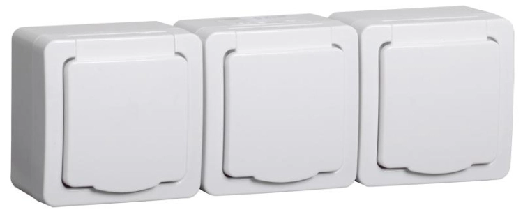 ГЕРМЕС PLUS белый Розетка 3-местная О/У с/з с крышкой РСб23-3-ГПБб IP54 | ERMP32-K01-16-54-EC | IEK