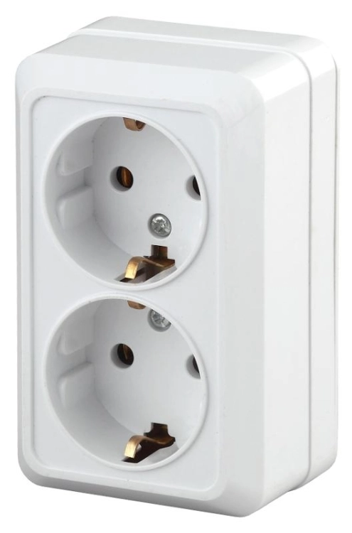 2-204-01 Intro Розетка 2х2P+E Schuko, 16А-250В, IP20, ОУ, Quadro, белый | Б0027655 | Intro